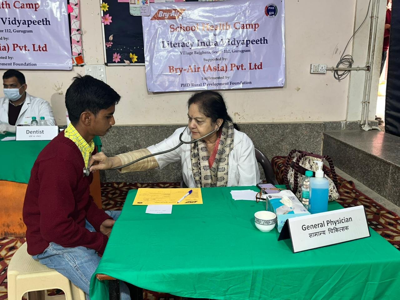 A five-day School Health Camp was successfully conducted from 16th to 20th February at Literacy India Vidyapeeth, Sector 112, Gurugram, with the support of Bry Air (Asia) Pvt. Ltd. The camp covered students from Classes I to X, ensuring comprehensive health screening and awareness.